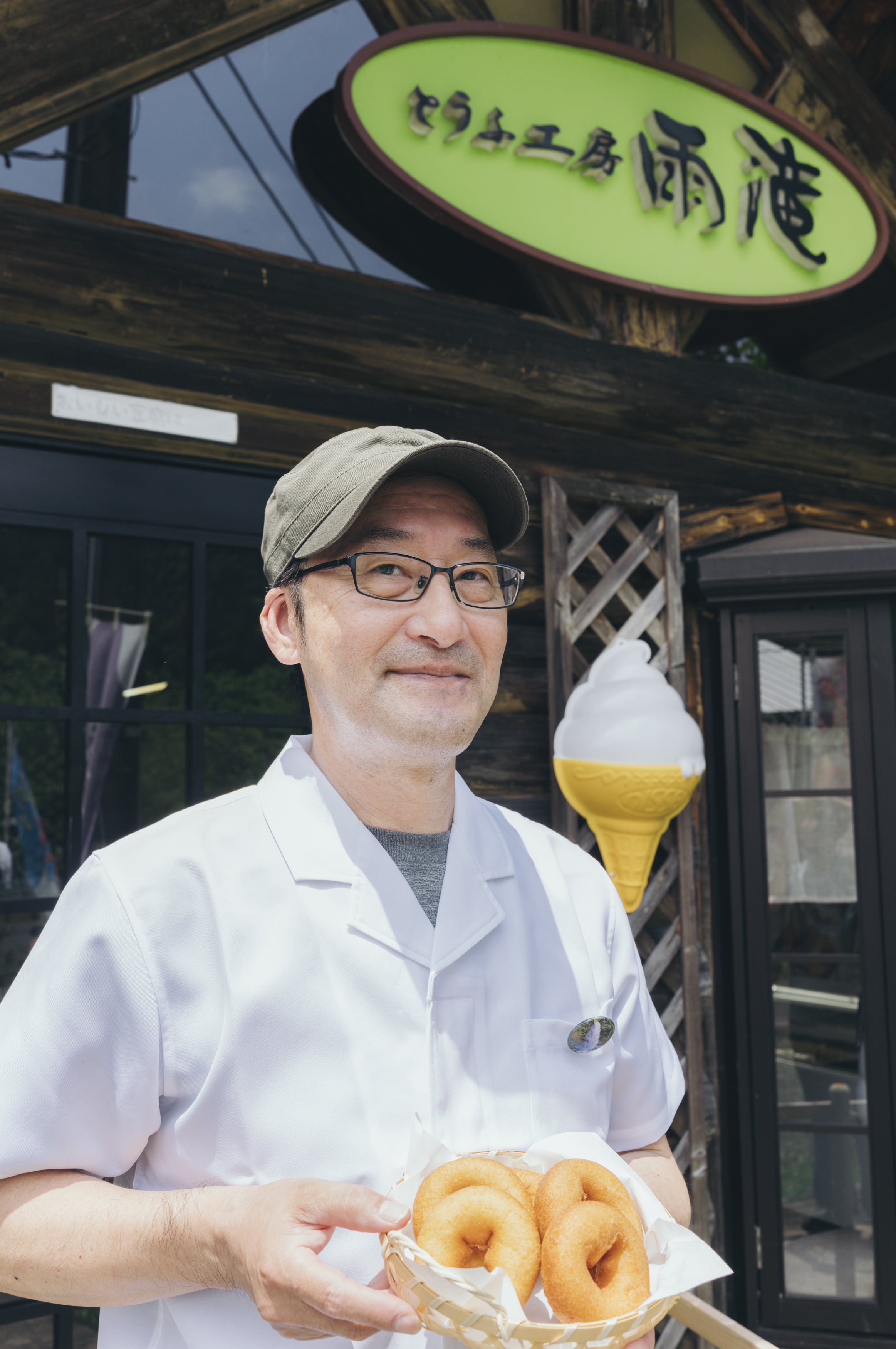 不運は重なり、二年前には台風被害で雨滝の橋が倒壊。観光ができなくなり、「滝のついでに寄ろうかと思ってくれるお客さんは来なくなった。でも、待っていてもだめだと攻めに出ました」と山野さん。商工会に相談し、補助金を使って移動販売を行うためのキッチンカーを導入。以前から根強い人気の豆乳ドーナツを、県東中部のスーパーに出向いて販売するようになった。