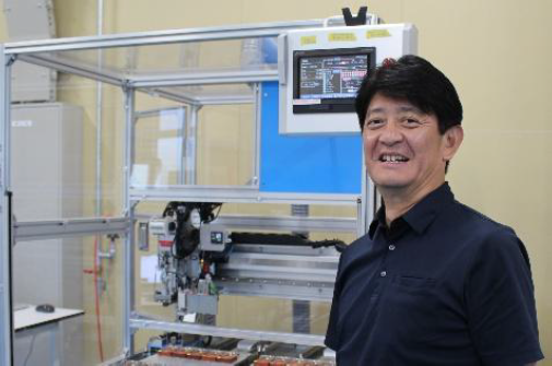 北欧車メーカーでは、フロントガラスに融雪用熱線が入ったものが多いが、日本ではあまりなじみがない。しかし、電気自動車の普及に伴い、需要が増えると、岡本裕文取締役。「2030年には、車の販売台数の約40%が電気自動車になると言われており、融氷・融雪機能がエンジンの暖気から、通電によるフロントガラスの発熱方法へ変更になりつつあります」とした。中国のグループ会社でも同じようなハーネス製品を作っているが、新興感染症や関税問題などのカントリーリスクを避けるため、国内製造を行うこととなったそうだ。「ゼロからの製品開発でしたが、自社で自動化装置の開発製造を行ってきた強みを生かし、なんとか生産にこぎつけました。ライン製造を行うので、かすかな誤差が、100個目、1000個目になると大きな差になってくる。そこを調整し精度を高めるため、試行錯誤の連続でした」と岡本取締役。