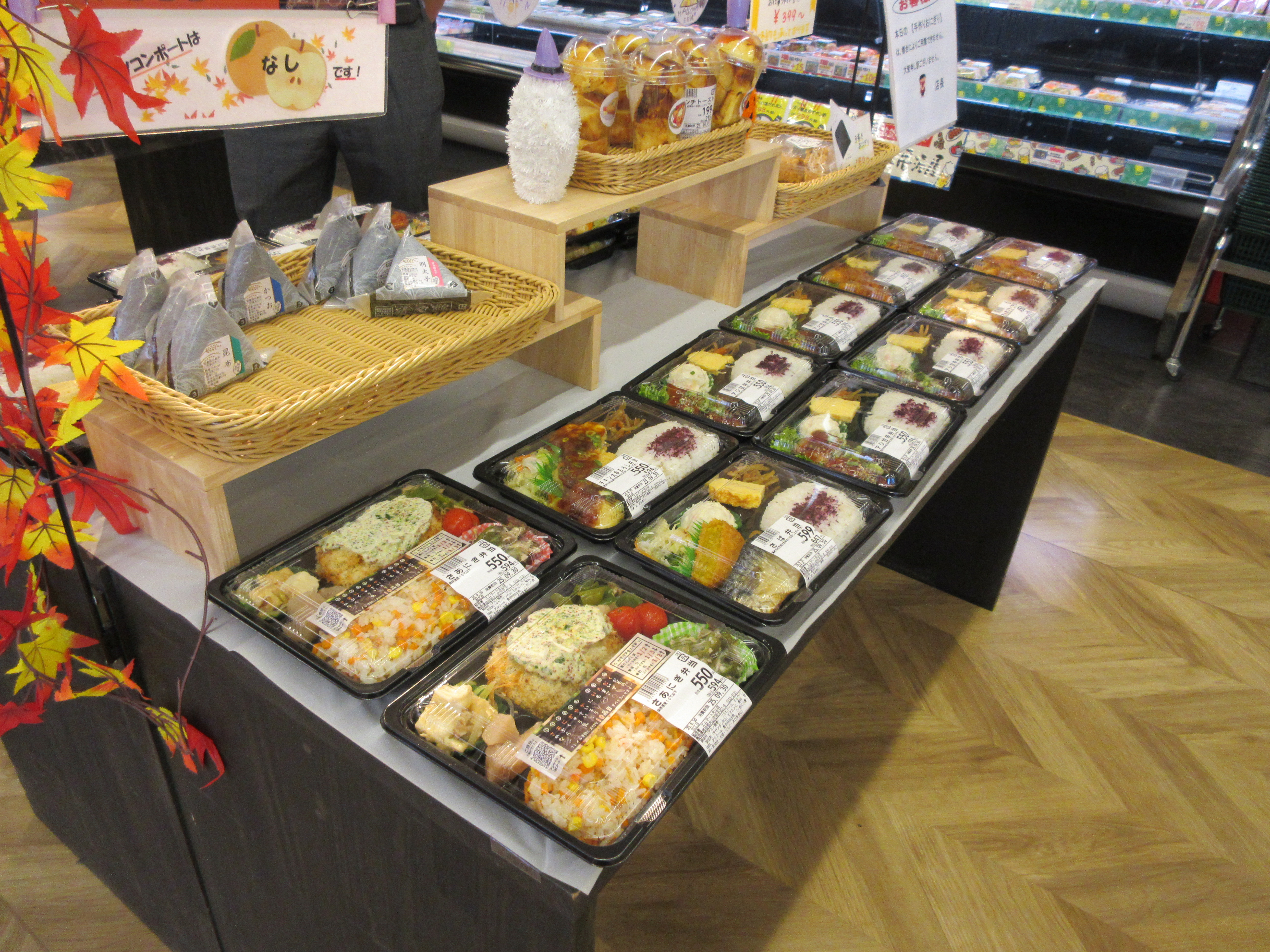 多彩な惣菜が人気のエムマートは、流行をキャッチした新しい惣菜の考案や、「普段の食生活を考えるきっかけに」とフレイル予防の栄養たっぷりの弁当なども販売されています。品揃えも生鮮食品に加え、百円均一の商品や小型の家電など、一通り揃う、地元の人が困らない売り場作りを心掛けられています。地域の顧客に役立つ店舗であり続けるエムマートさんの良き相談相手となり、今後の発展を後押しできるよう支援を継続していければと思います。