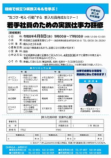 若手社員のための実践仕事力研修令和8年度 新入社員基礎研修を中部地区商工会の共催で開催します。新卒者等の採用予定があります皆さまは是非ご参加下さい。【開催概要...