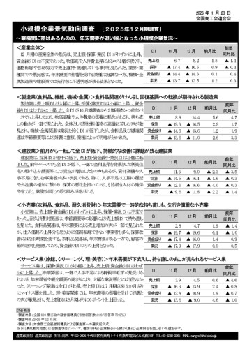 全国の商工会経営指導員が小規模事業者等に直接ヒアリングし、全国商工会連合会が毎月集計している「小規模企業景気動向調査」の2025年12月分が公表されましたので掲載...