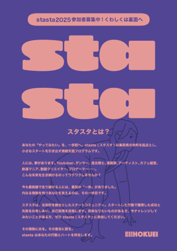あなたの「やってみたい」を、一歩前へ。stasta (スタスタ)は鳥取県北栄町を起点とし、小さなスタートを引き出す挑戦支援プログラムです。人には、夢があります。Youtub...
