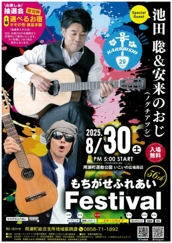 用瀬町の夏を彩る恒例イベント「もちがせふれあいFestival」が、今年も開催されます! 音楽あり、花火あり、豪華抽選会ありの一日を、ぜひご家族・ご友人と一緒にお楽し...