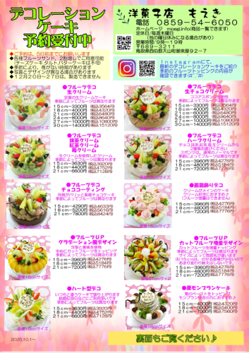[洋菓子店 もえぎ] 10月1日よりデコレーション価格改定のお知らせ