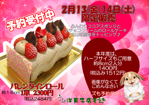 [洋菓子店 もえぎ] バレンタインロール予約受付中(#^.^#)/